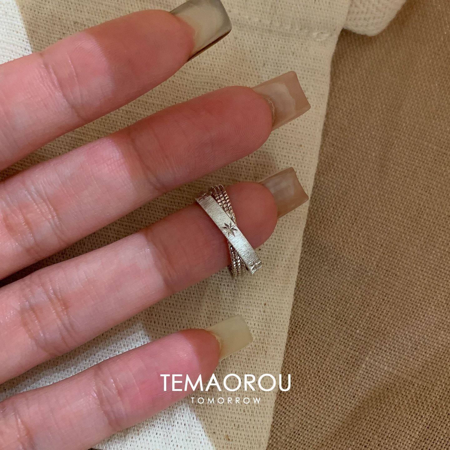 银色素圈三件套戒指女ins冷淡风高级感食指戒轻奢小众设计指环