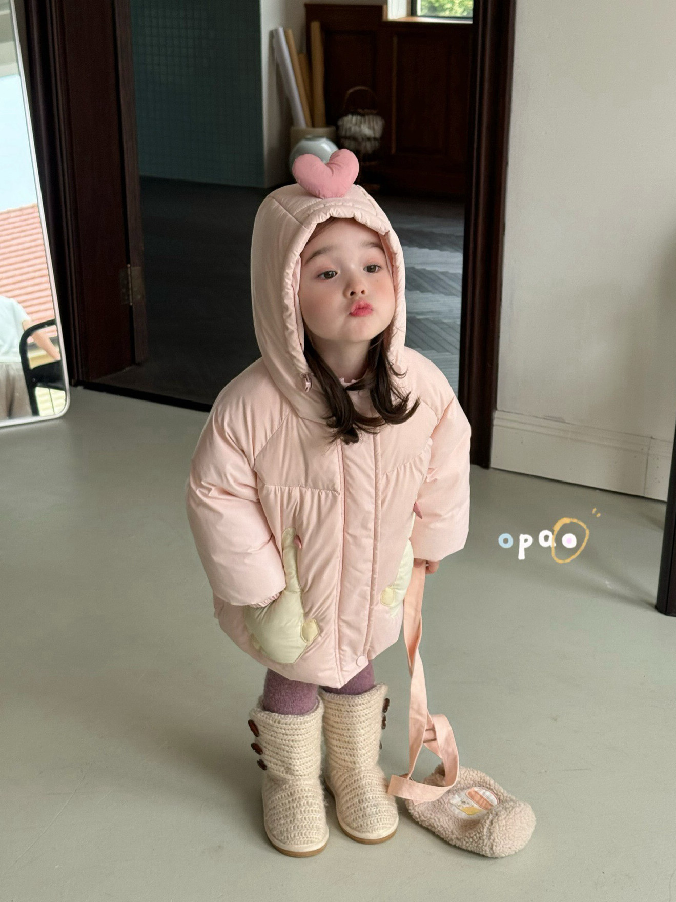 女童小童韩版 新款 可爱小鸭子桃心帽子羽绒服外套 2025冬季 凡妈童装