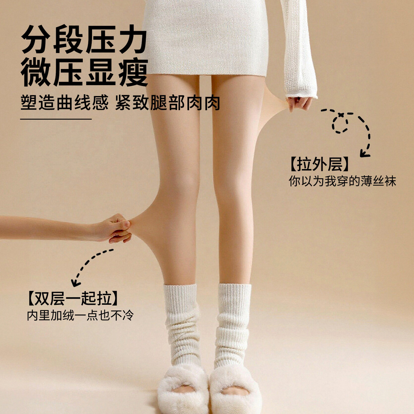 光腿神器魔法森林打底裤 袜女 秋冬双层加绒加厚超自然裸感美肤连裤