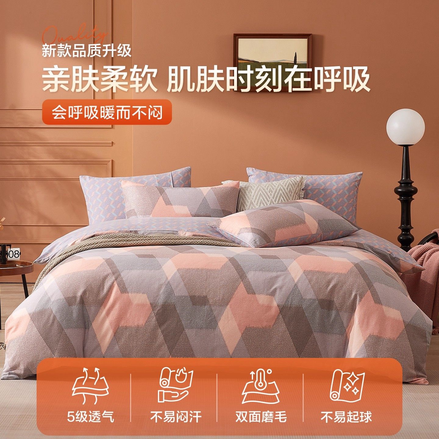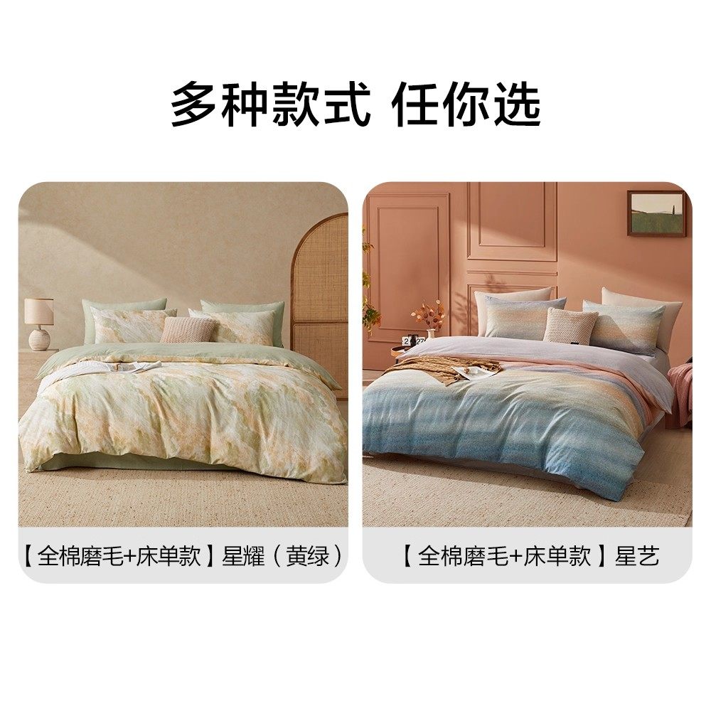 博洋磨毛纯棉四件套秋冬天加厚全棉床上用品床单被套三件套床笠款