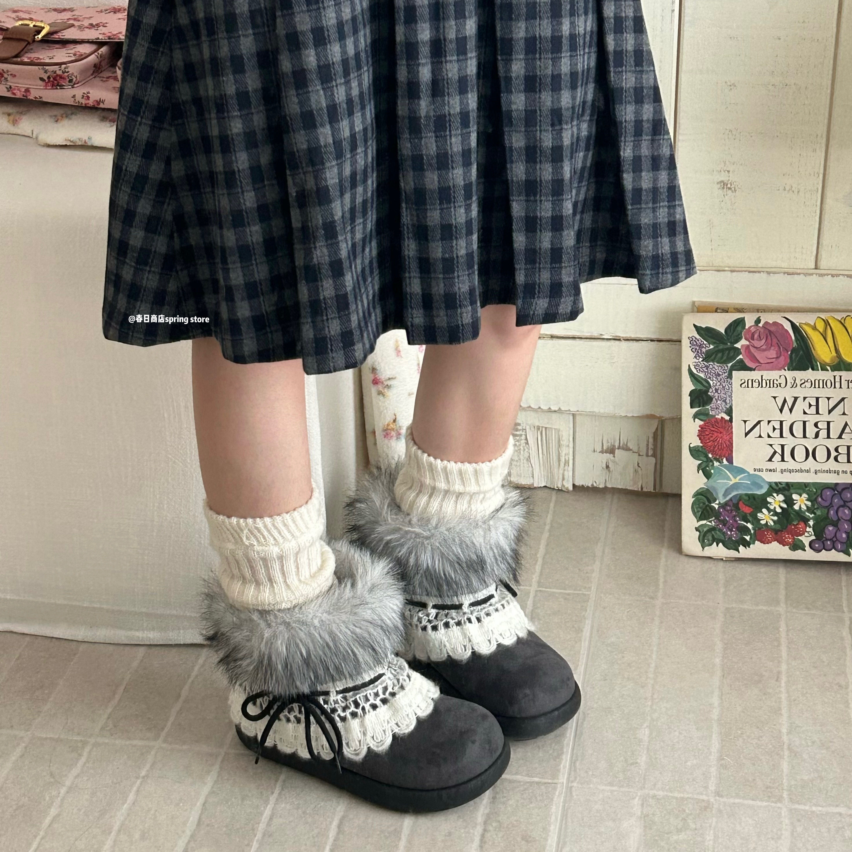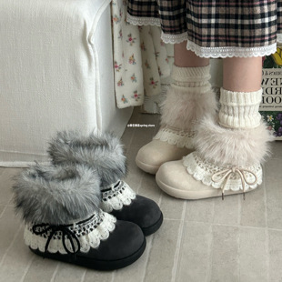 加绒加厚棉鞋 冬季 厚底短靴 2025新款 春日商店千禧风毛毛雪地靴女款