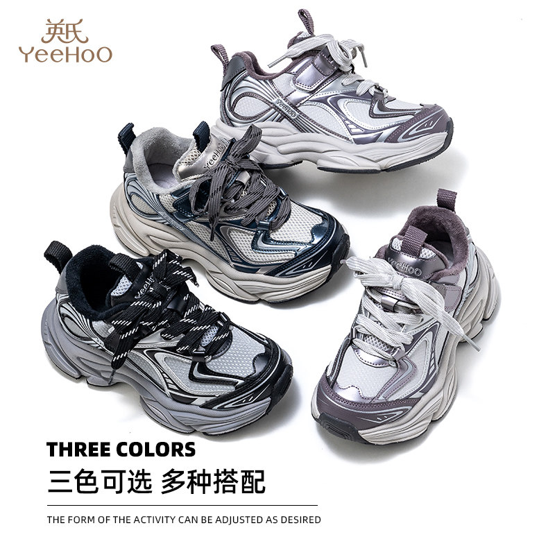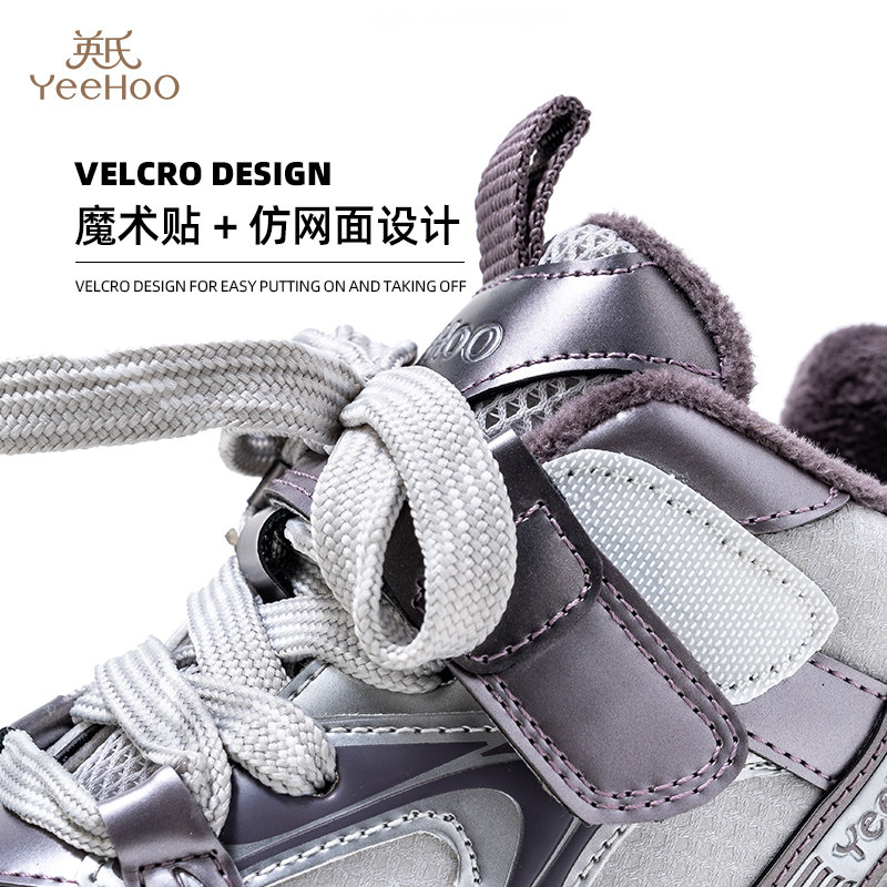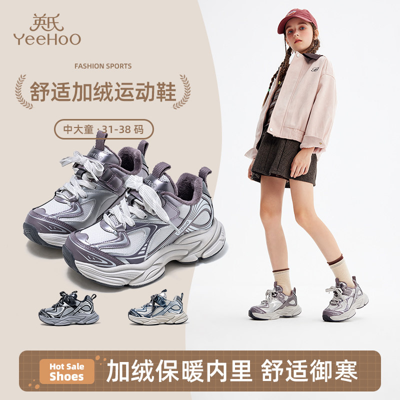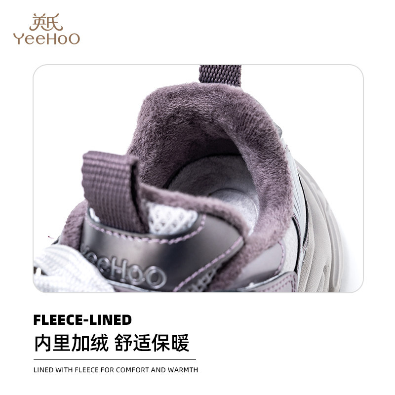子保暖户外休闲百搭儿童加绒运动鞋 英氏老爹鞋 女童冬天中大童鞋