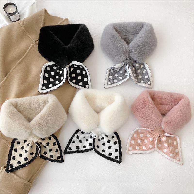 交叉可爱 百搭护颈小围脖仿獭兔毛毛绒领子2025新款 围巾女冬季 韩版