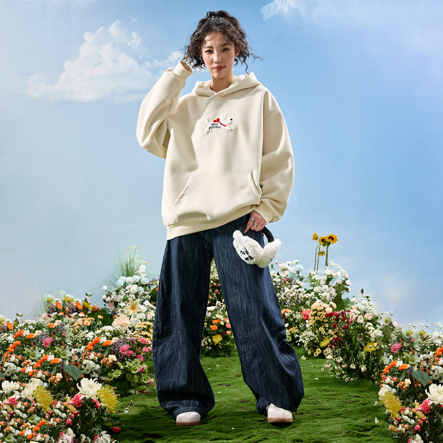 萌宠印花圆领卫衣宽松内搭打底衫 热风女士套头卫衣2025年秋季 新款