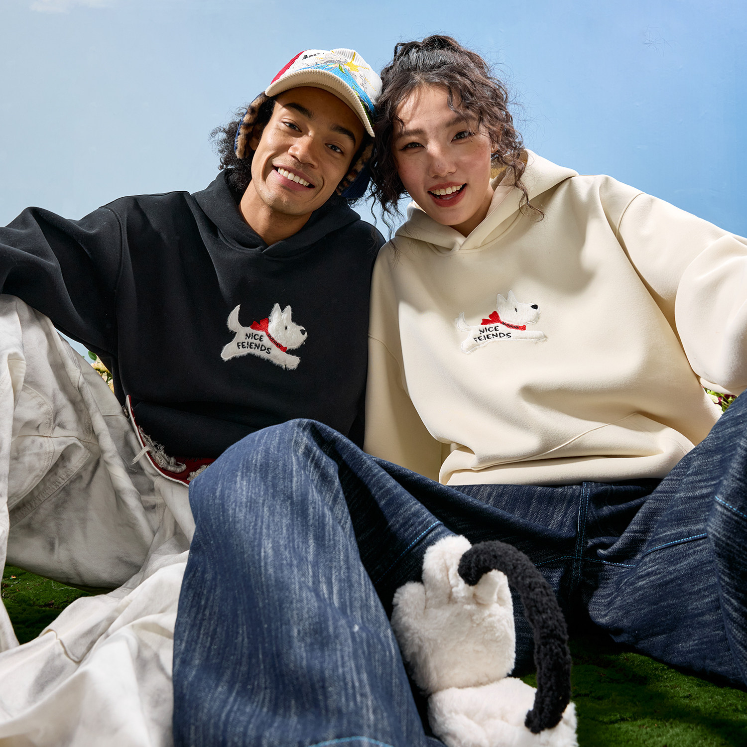 Nuthink多巴胺珍珠圆领卫衣字母重磅潮牌宽松情侣男女2025冬新款
