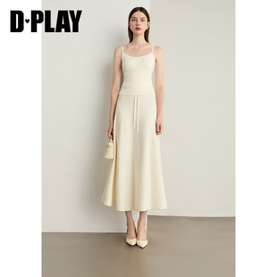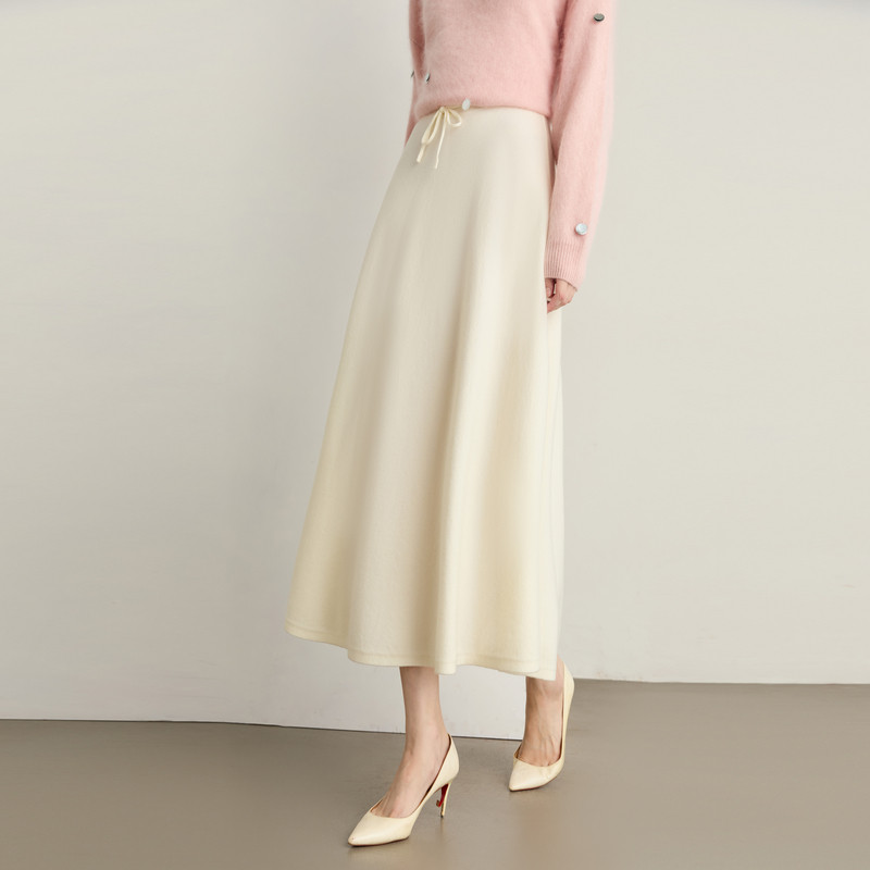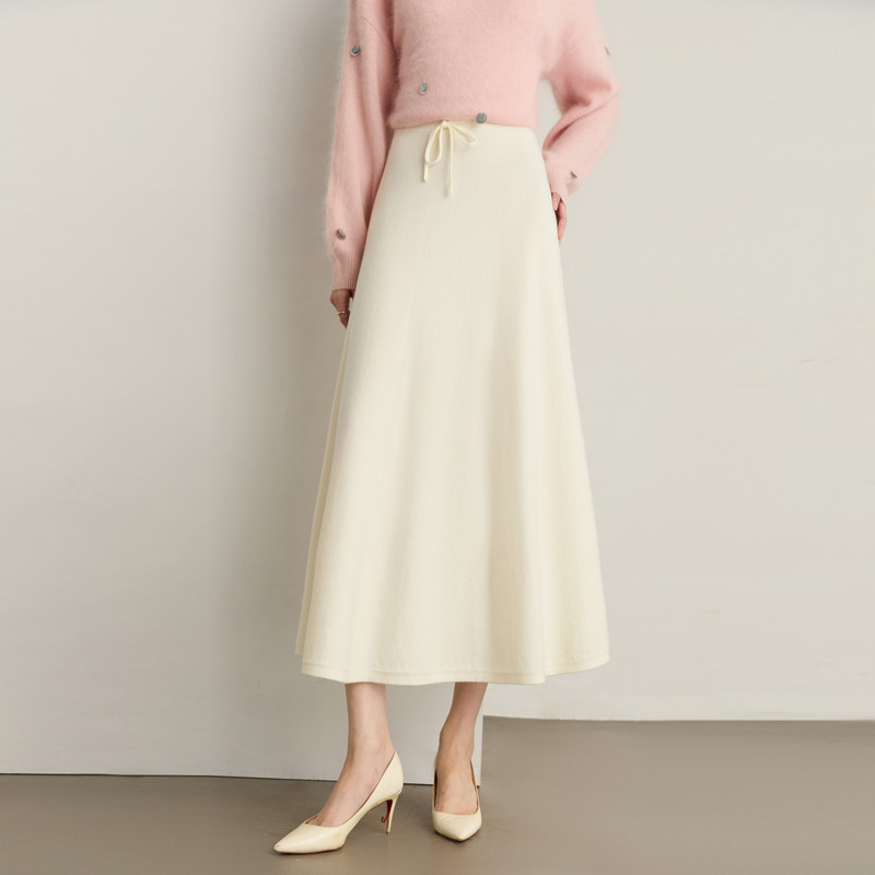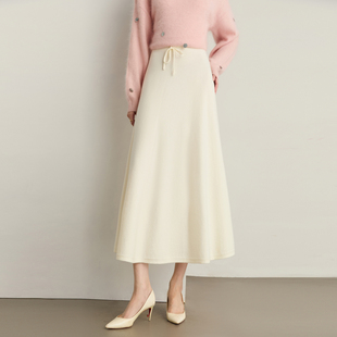 新款 2025年冬季 米白色针织半身裙女抽绳简约半身裙 惠品 DPLAY
