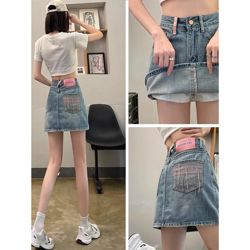 牛仔半身裙女夏季 高腰显瘦a字裙休闲百搭防走光内衬包臀短裙 新款
