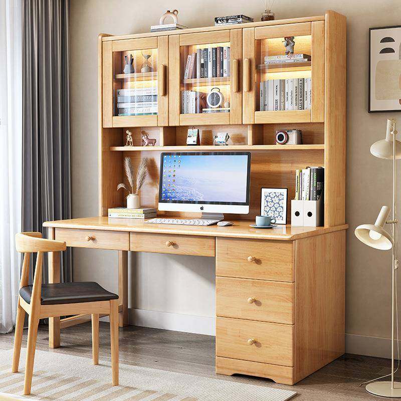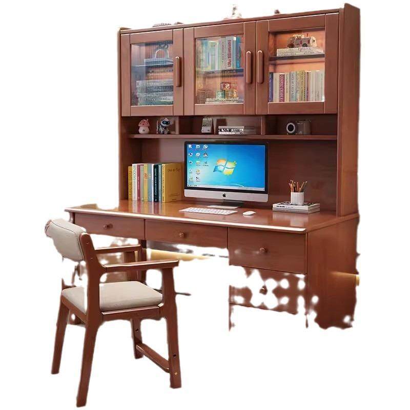 实木书桌书架一体学生电脑桌带书柜组合写字桌卧室学习桌办公桌
