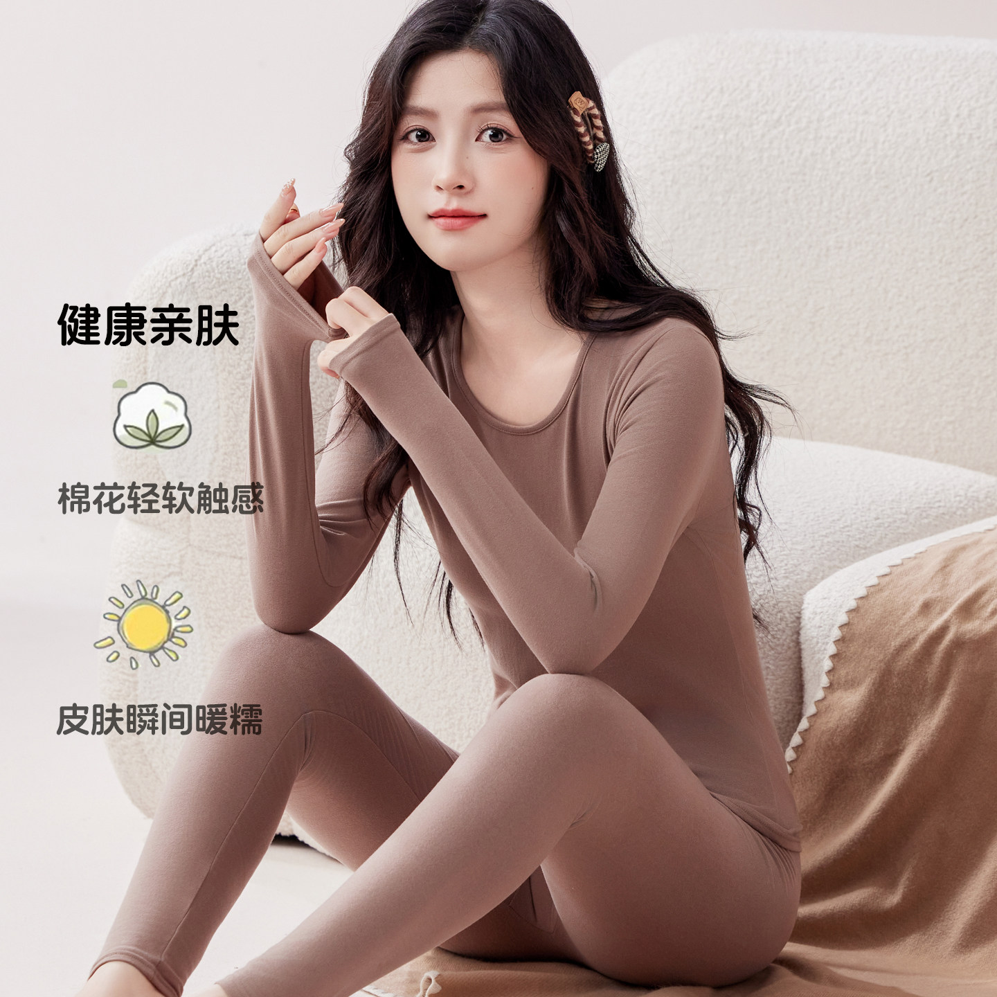 上衣贴身 女士加绒蚕丝7A冬季 蕉保暖加厚打底德绒内衣套装 秋衣秋裤