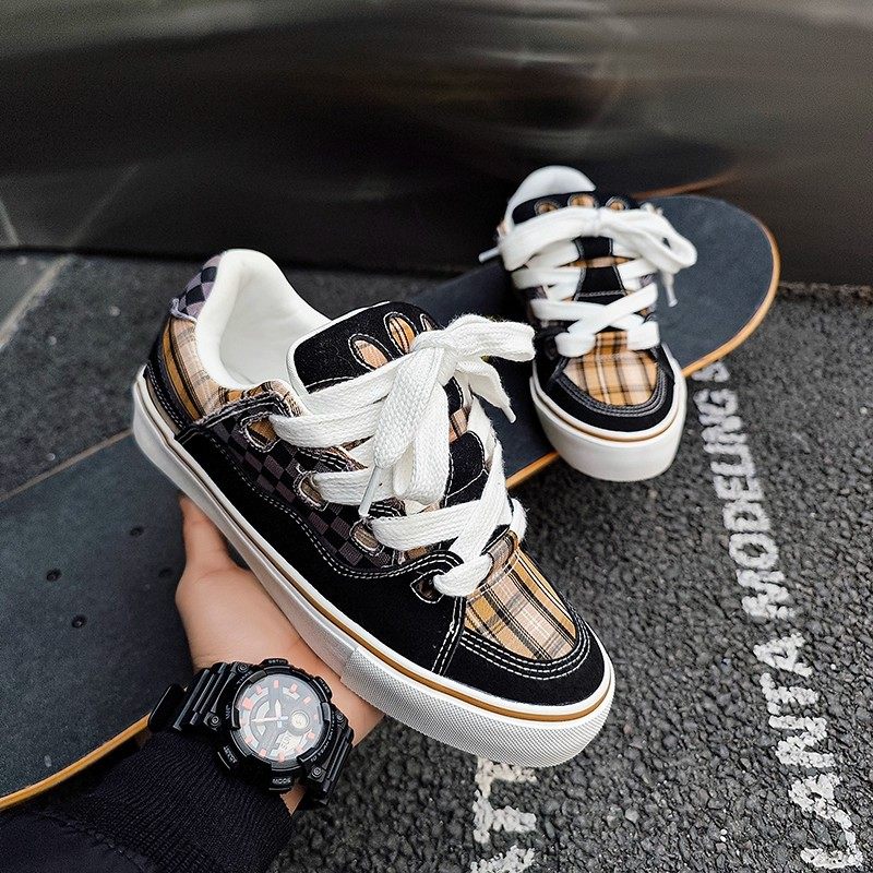 男女休闲滑板鞋 黑白小香风拼接帆布鞋 ins潮流情侣面包鞋 2025新款