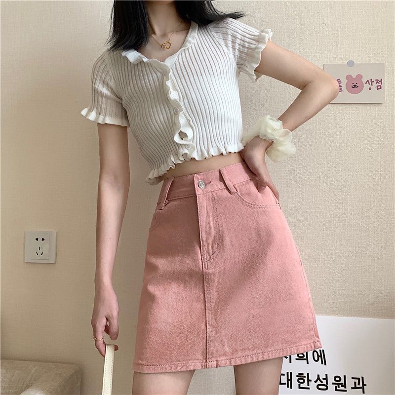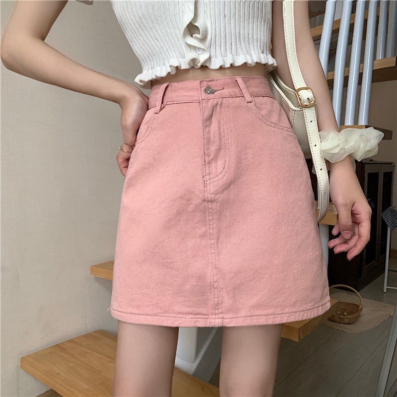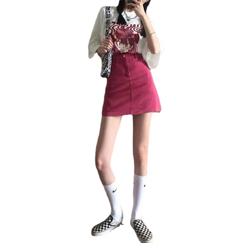 玫红色甜辣裙牛仔裙短裙女夏辣妹A字裙包臀裙腰半身裙裙子夏季