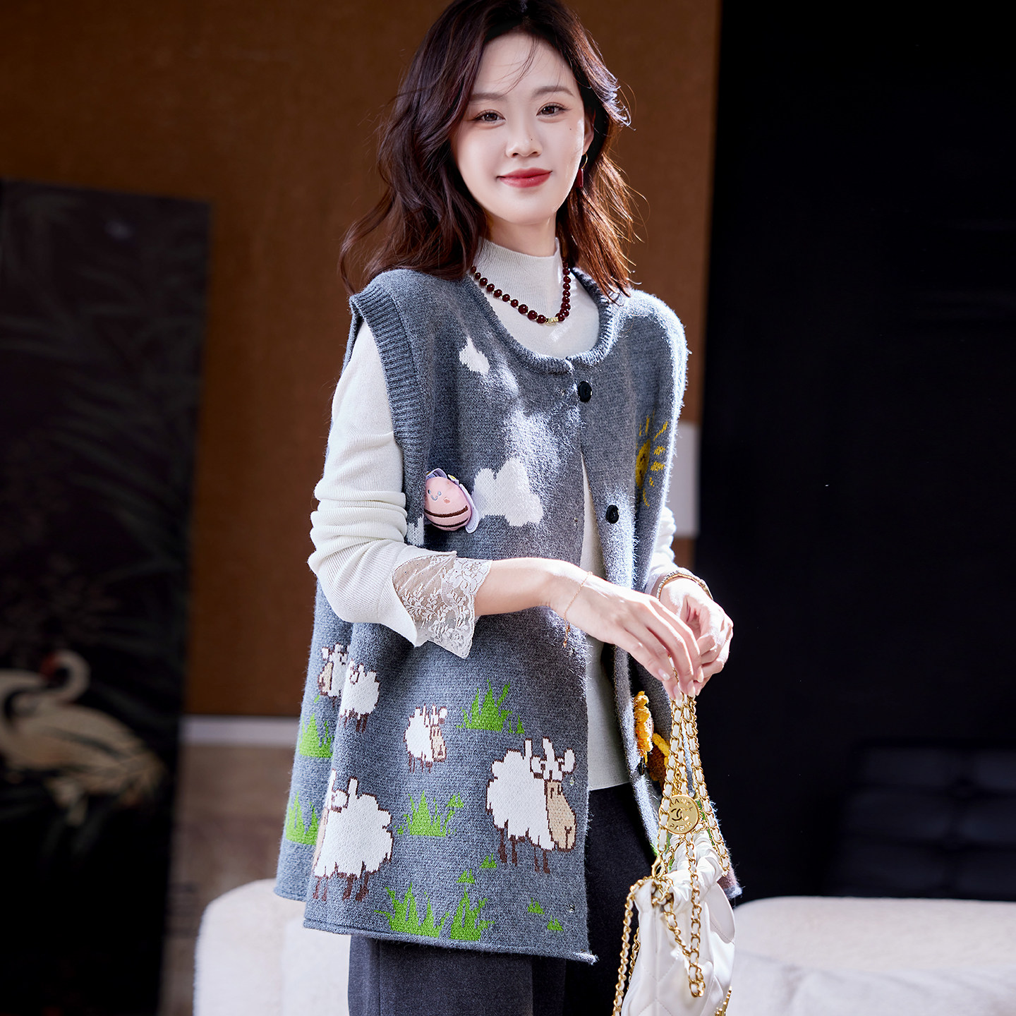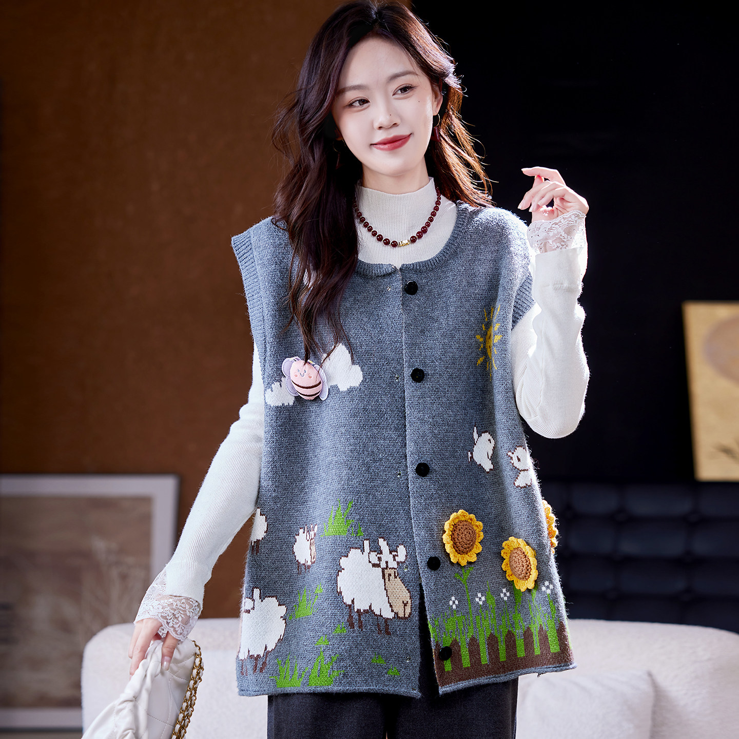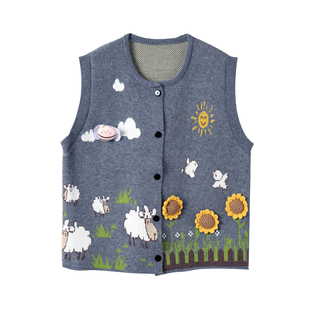 宝诗黎圆领勾花针织马甲背心2026早春减龄休闲百搭宽松大码 外套女