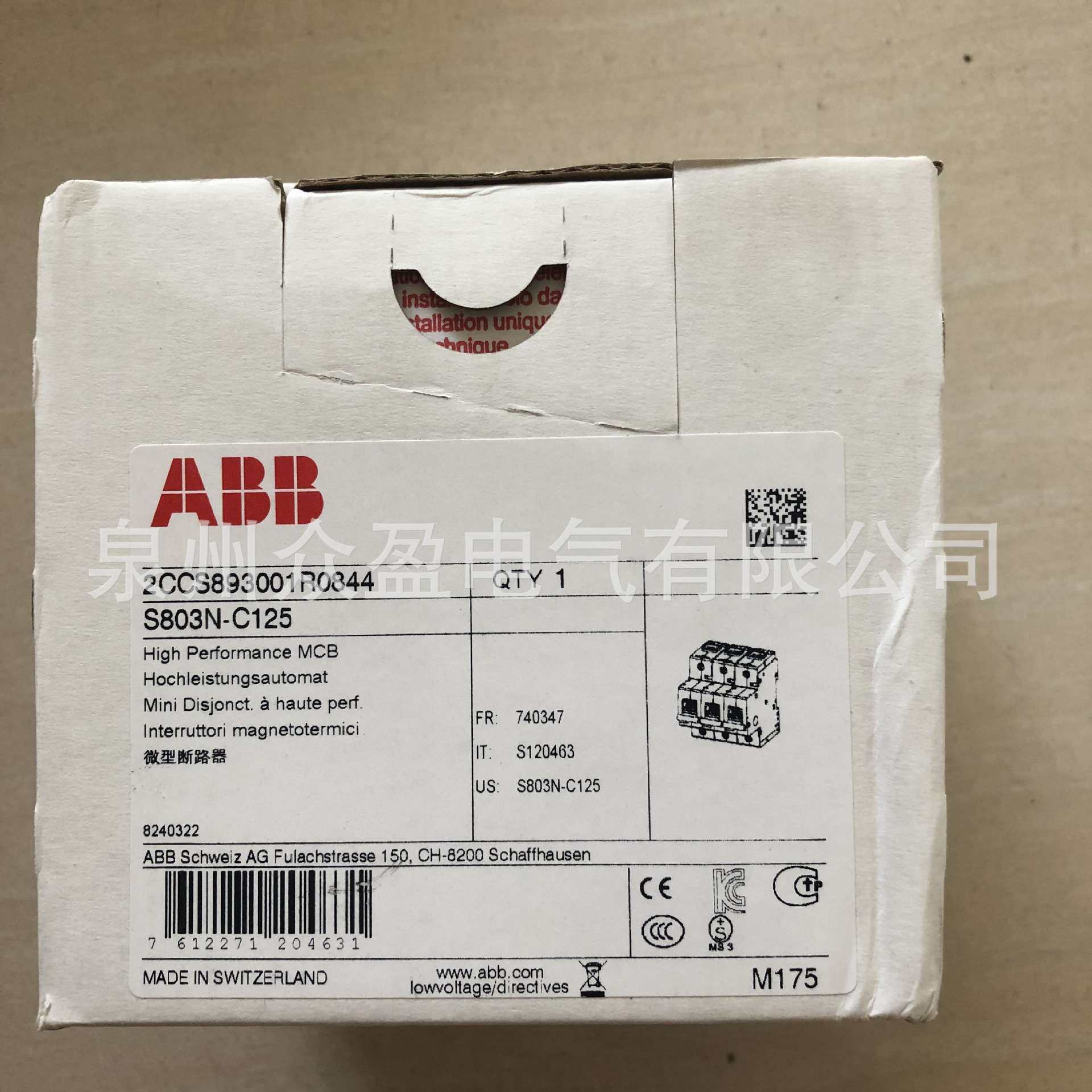 ABB微型断路器 10264162 S801P K125;2CCG001252R0001
