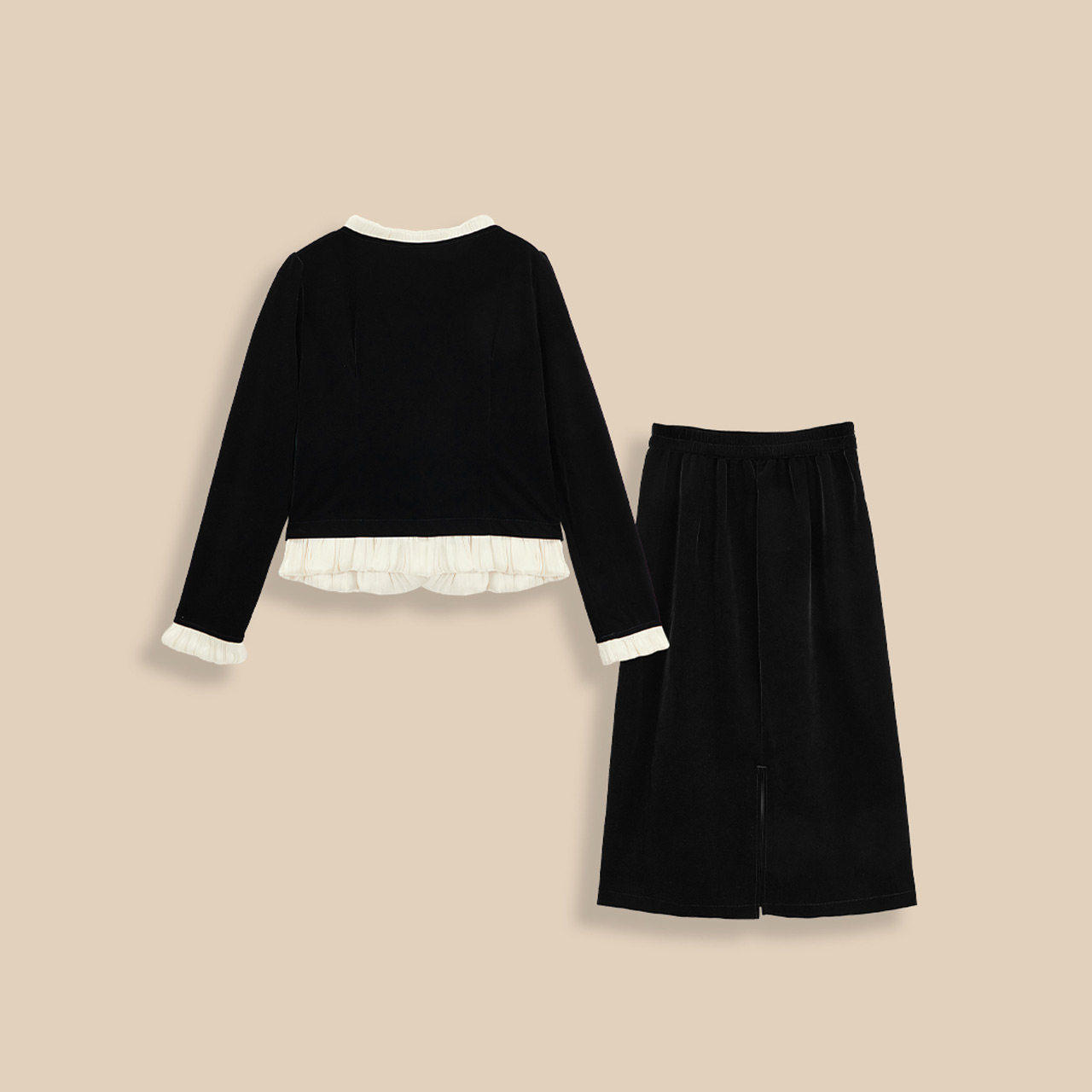 大码 微胖 女装 2025秋冬新款 气质天鹅绒上下套裙 IEF 法式 爱依服