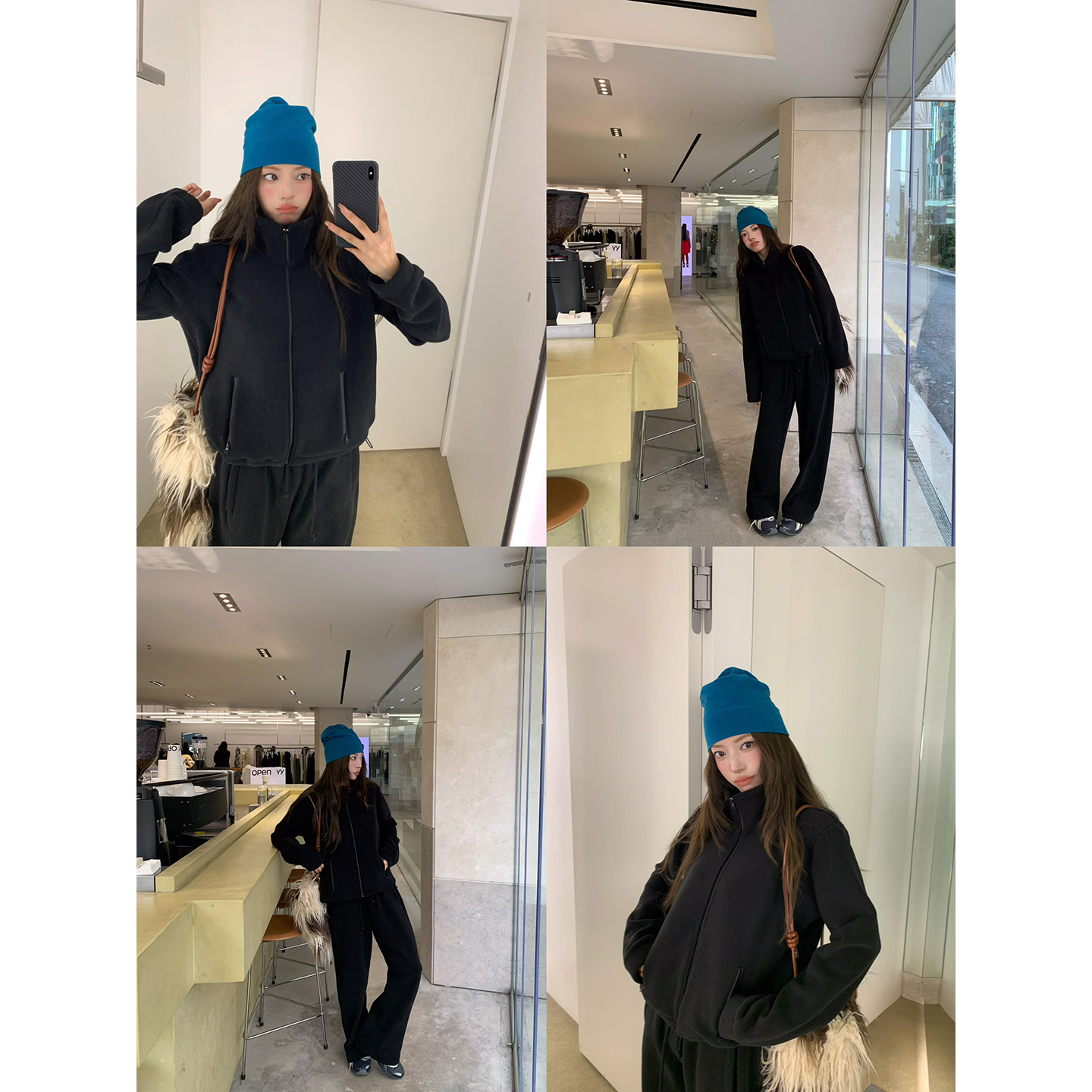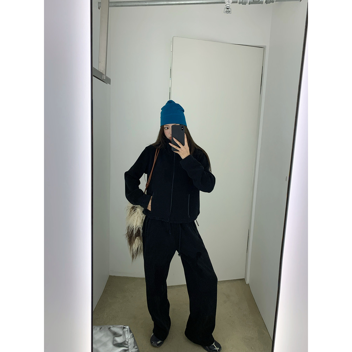 休闲套装 摇粒绒立领防水拉链外套抽绳长裤 蓝莓绒糕 牙套大汪