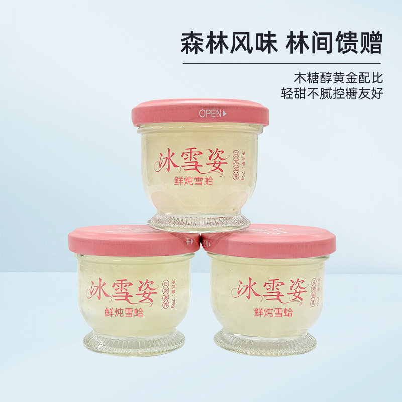 正品 6瓶礼盒桦树汁木糖醇配料干净高纯度即食雪蛤油 鲜炖雪蛤75g