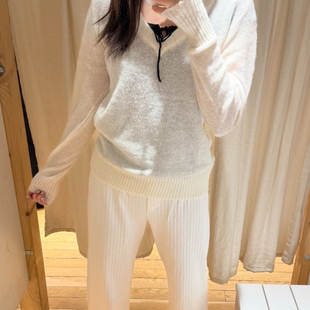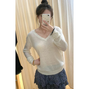 修身 女长袖 百搭毛衣温柔慵懒风上衣 bm极简风V领针织衫 Brandy