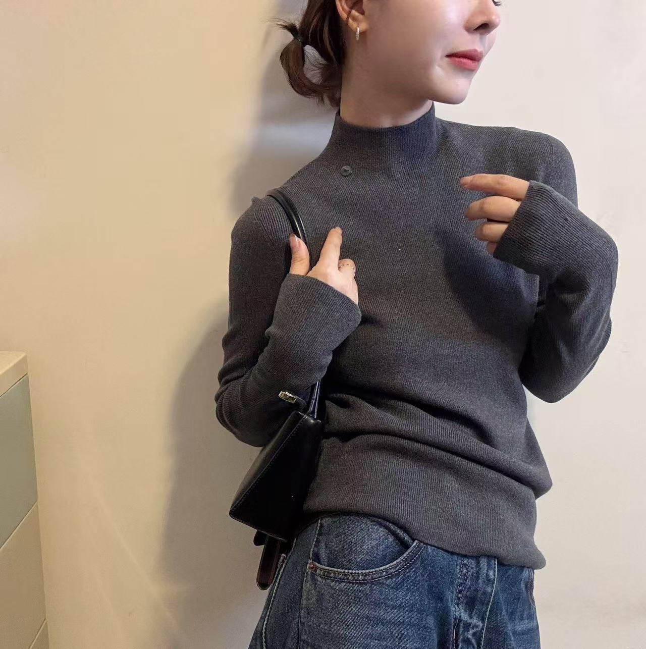 贝壳扣半高领长袖 打底衫 针织衫 欧货女装 潮 女2025秋冬新款 BADX正品