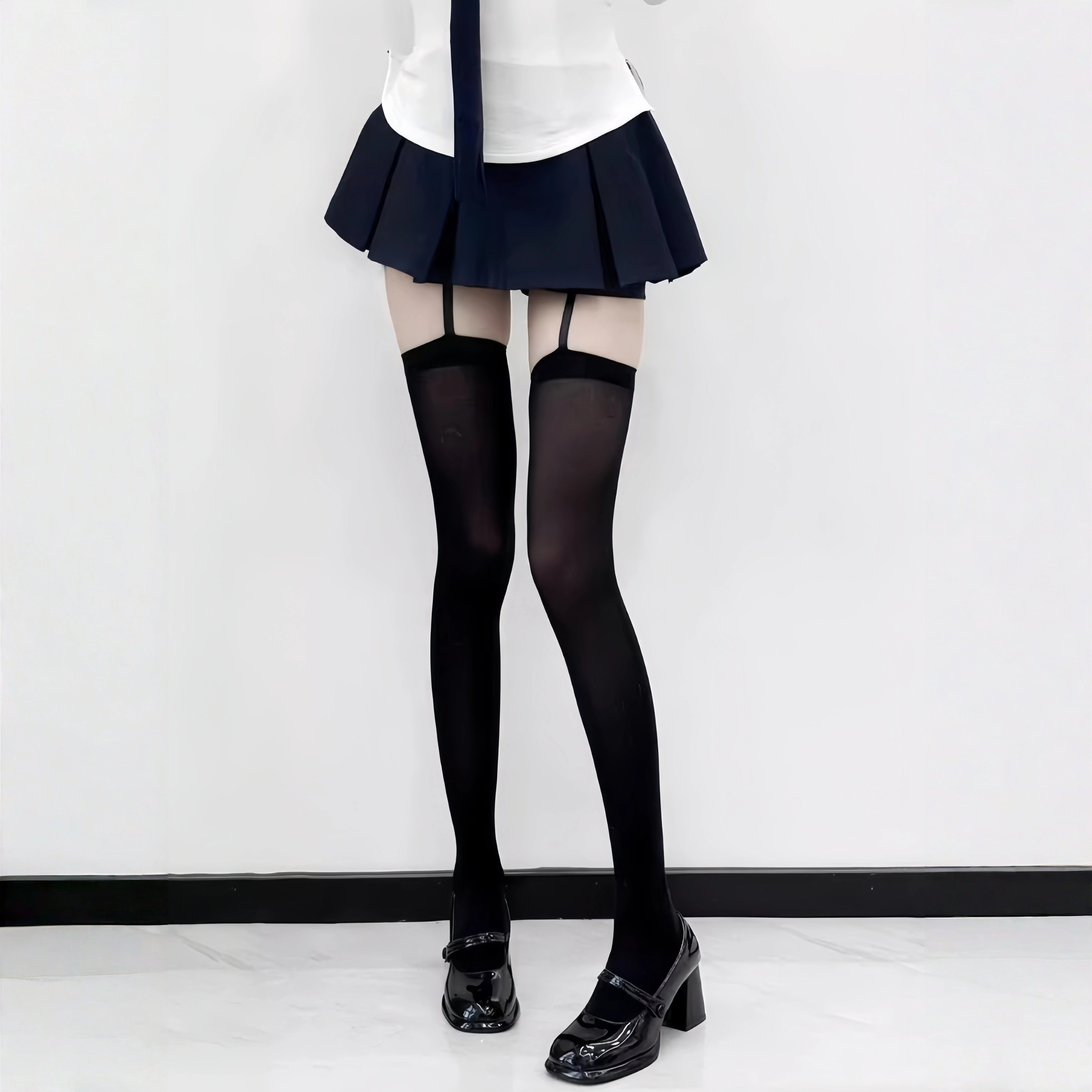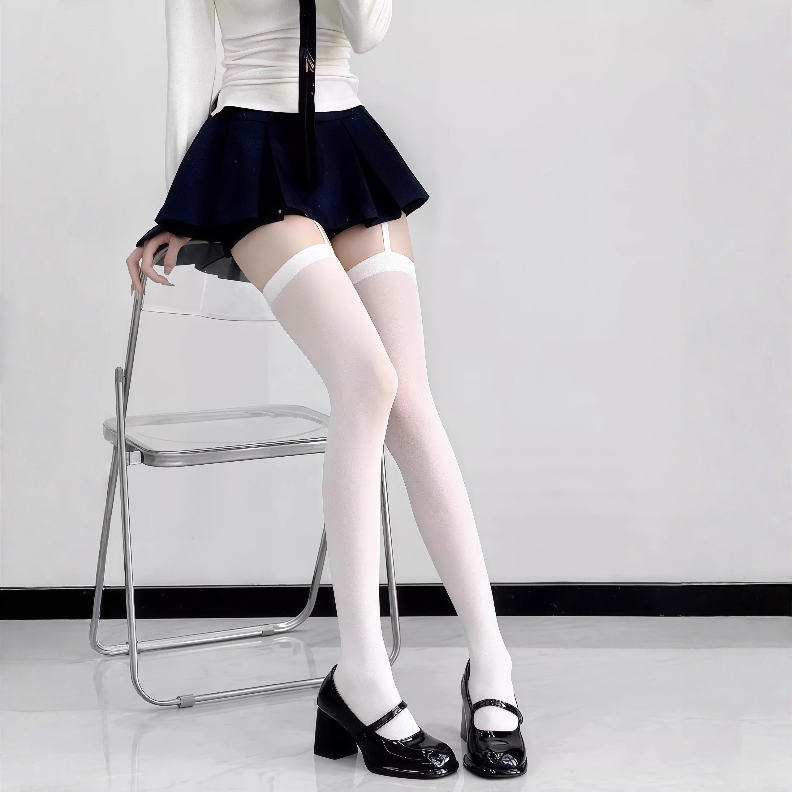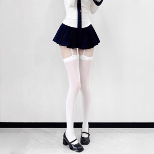 天鹅绒长筒袜女过膝袜甜美吊带袜白色jk大腿袜子y2k高筒薄款 黑丝