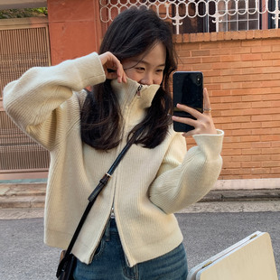 外套 百搭宽松拉链针织开衫 一三良品小个子 高领毛衣秋冬外穿新款