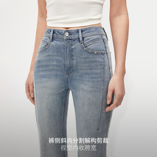 超模微喇叭牛仔裤 辣妹高腰铆钉烫钻弹力修身 子女 新款 ONLY2026春季