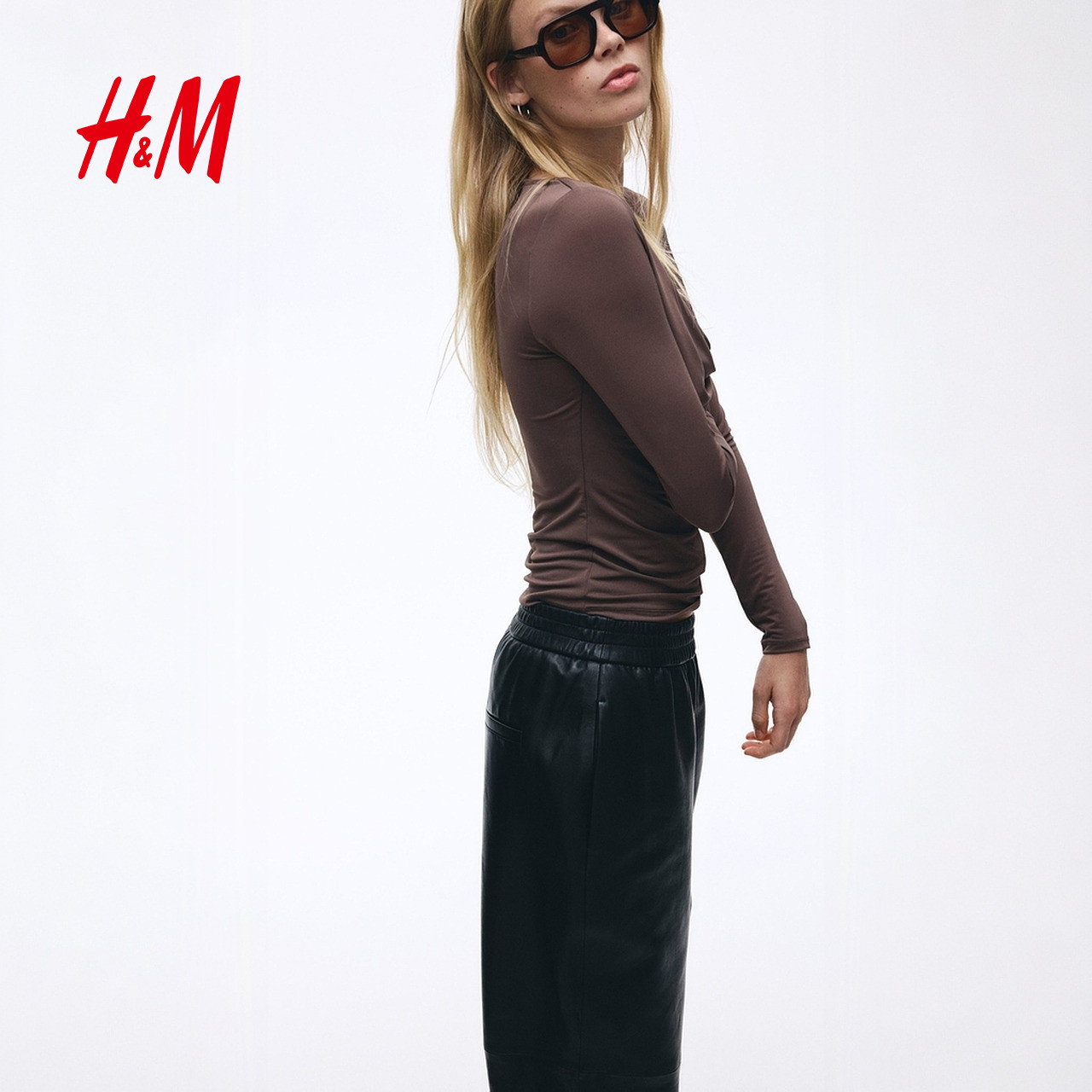 T恤2025冬季 保暖时尚 新款 内搭打底衫 休闲上衣1310089 长袖 HM女装