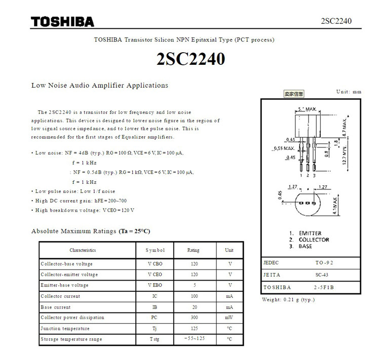 精密配对 原装 100% 三极管 2SC2240 晶体管 2SA970