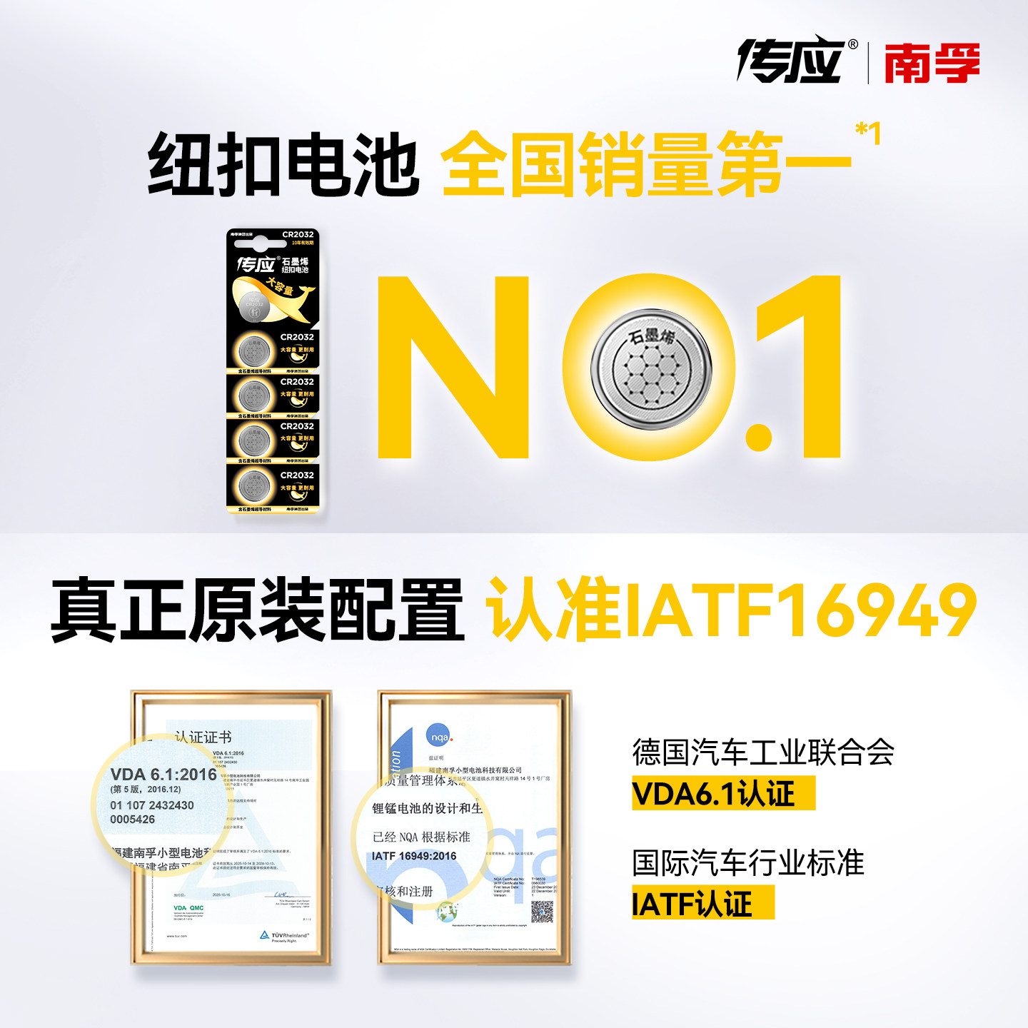 南孚传应CR2032汽车钥匙遥控器3V纽扣电池CR2025适用大众奔驰奥迪宝马哈弗别克日产主板大容量温度计电子秤