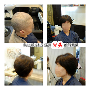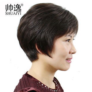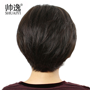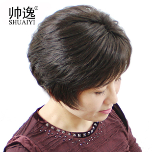 送妈妈全手织整顶假发套真人发老人直发短发斜刘海中老年假发女士