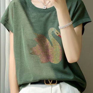夏季 上衣薄款 竹节棉短袖 蝙蝠袖 T恤女圆领洋气百搭小衫 2026新款