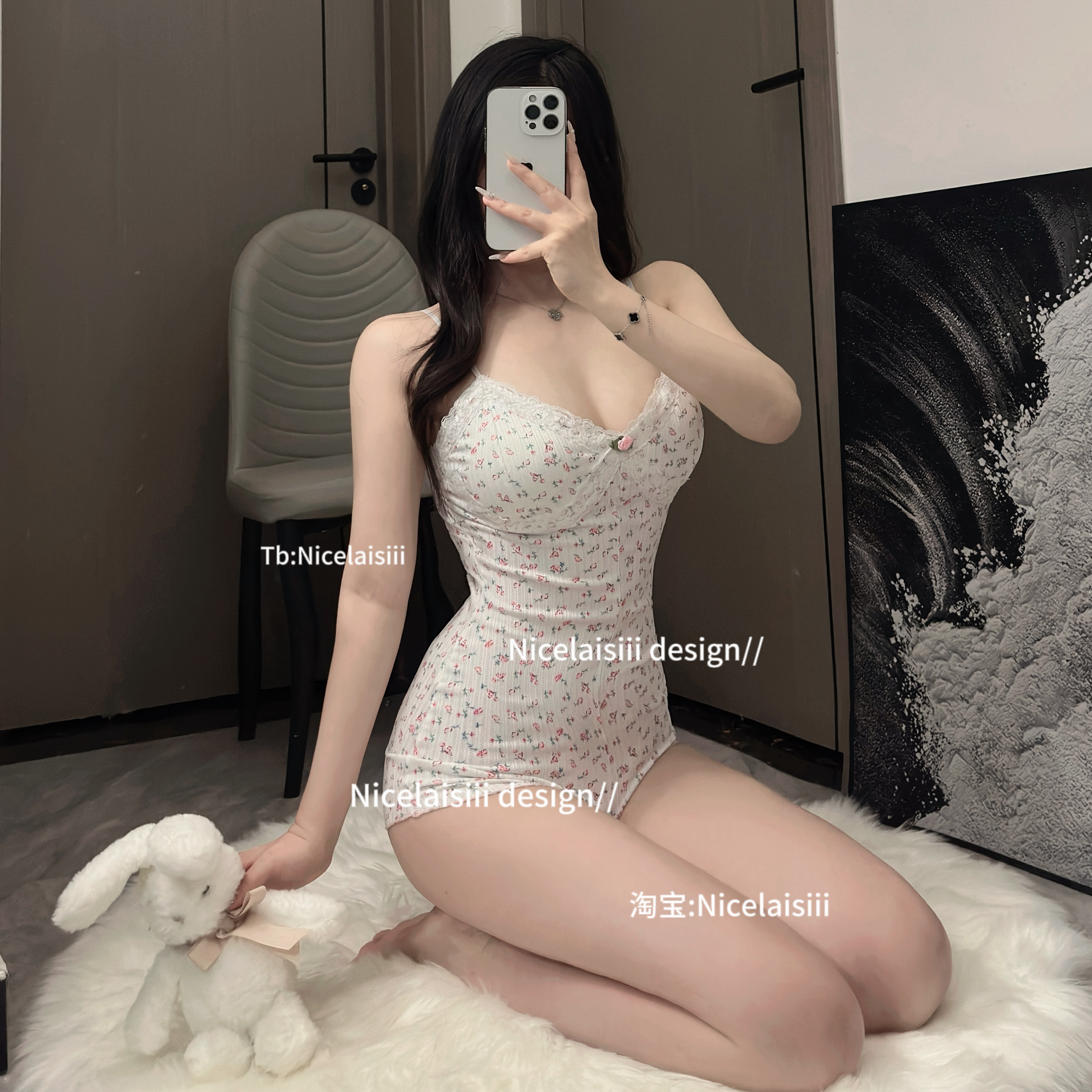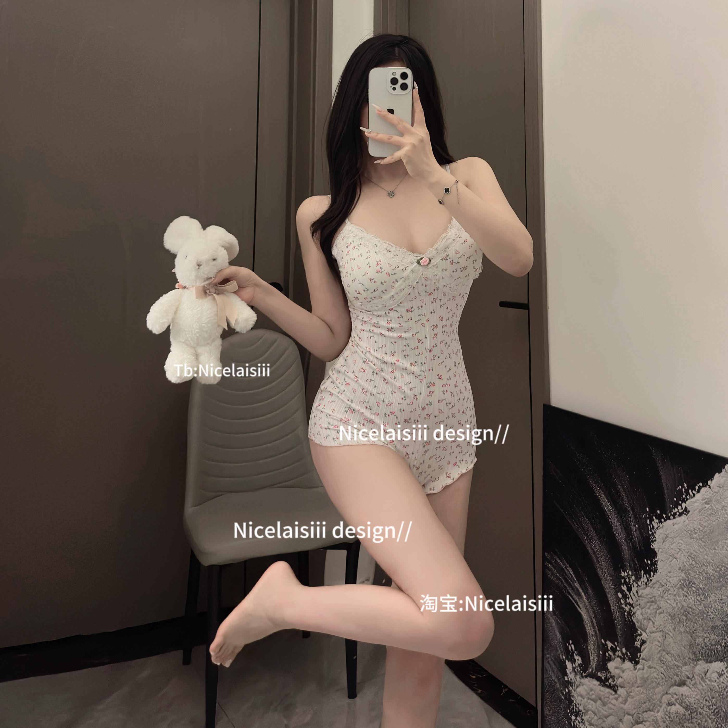 Nicelaisiii恋夏 家居服 甜妹带胸垫纯欲风连体睡衣夏吊带性感新款