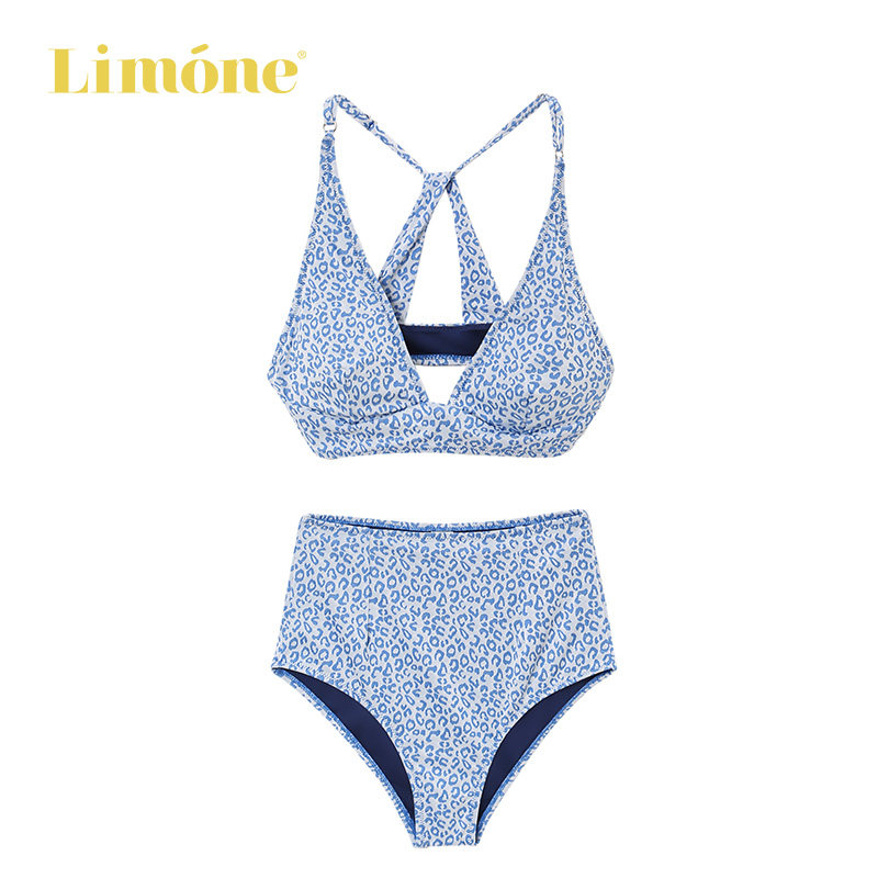 Limone高腰分体泳衣女热辣露背比基尼沙滩绝美度假游豹纹橙色泳装