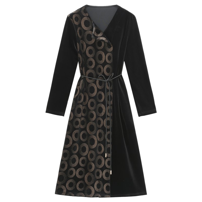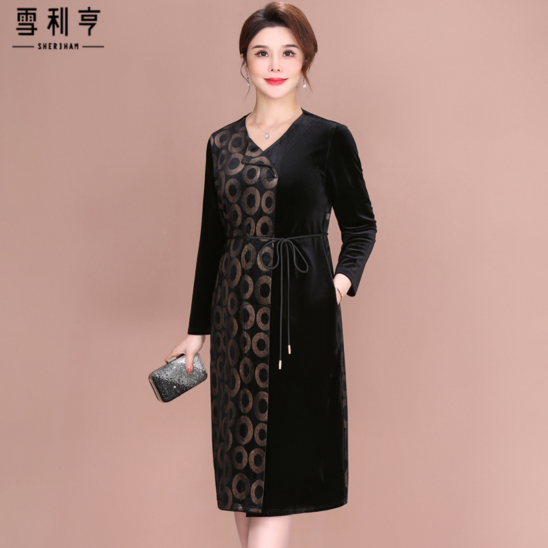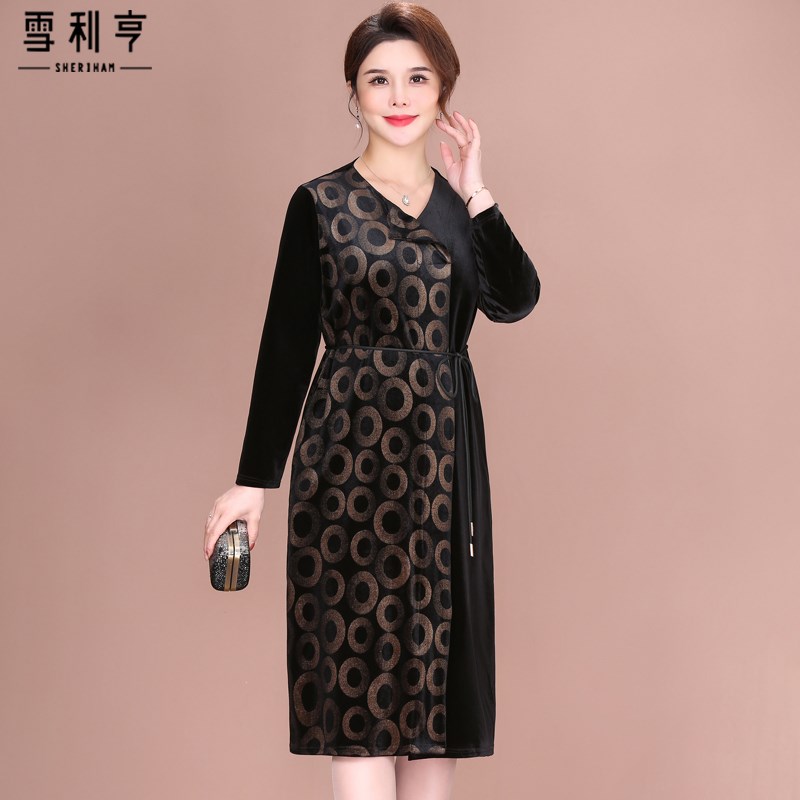 中年妈妈打底裙 时尚 现货速发金丝绒连衣裙2025新款 长裙宽松大码