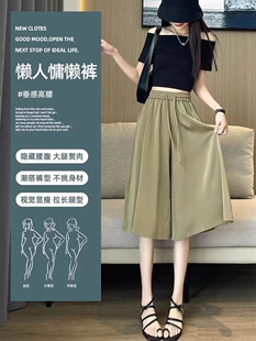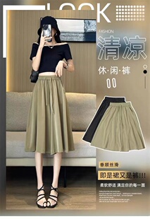 韩版 高腰薄款 显瘦阔腿裤 冰丝七分裤 裤 新款 宽松休闲超大码 裙 女夏季