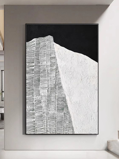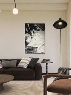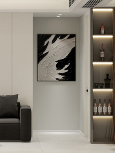 手绘肌理抽象油画客厅玄关餐厅背景墙面装 饰画高级黑白灰沙滩壁画