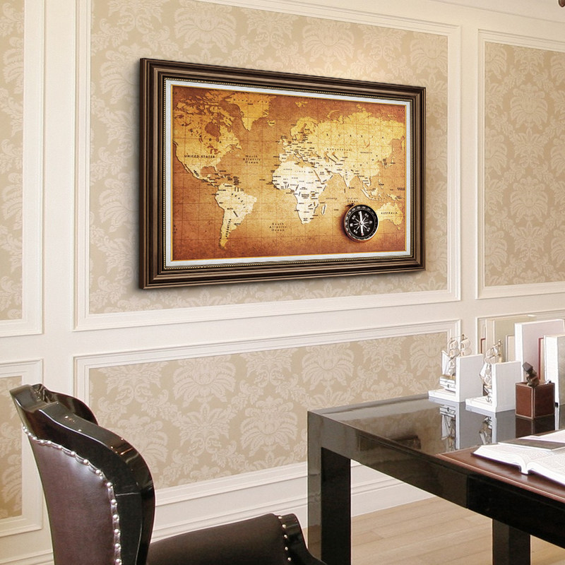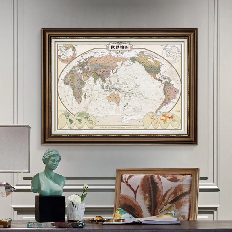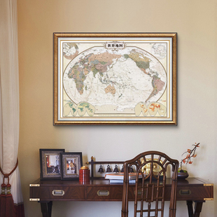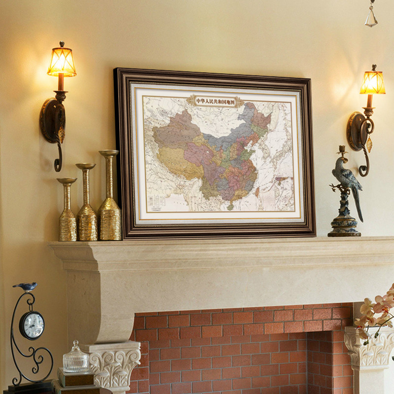 中国地图装 客厅沙发背景墙挂画办公室书房复古墙面画油画 饰画美式