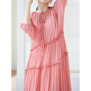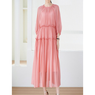 欧美大码 桑蚕丝大牌气质长裙胖MM裙子设计感小众女 真丝连衣裙新款