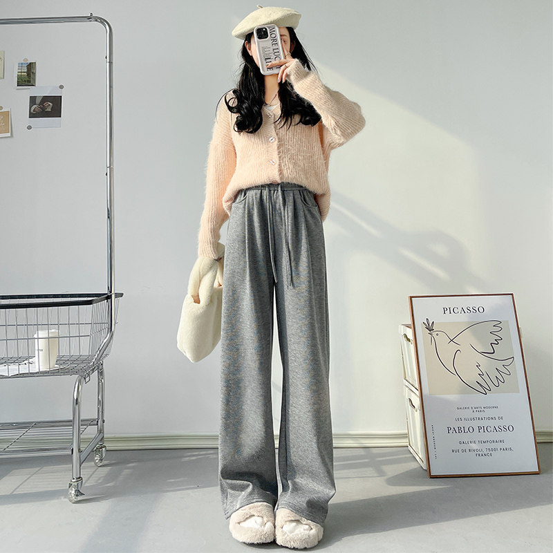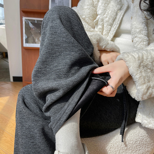 女2025年春季 直筒休闲加长拖地裤 新款 软糯风长裤 阔腿裤 灰色糯米裤