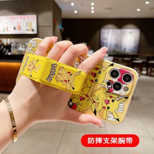 适用于苹果17手机壳16ProMax皮卡丘背贴支架15ProMax磁吸腕带iPhone14防摔13Pro 横竖屏追剧神器