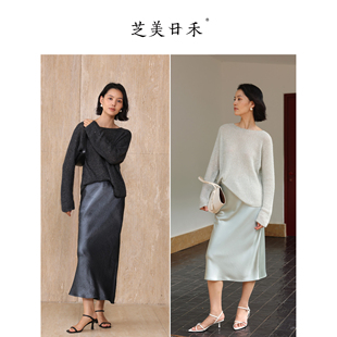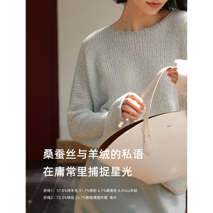 芝美日禾 上衣 星耀亮片桑蚕丝羊绒混纺宽松圆领镂空肌理针织罩衫