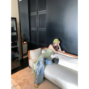 绿色条纹不规则裙摆无袖 设计感吊带外穿上衣 背心春夏2026辣妹修身
