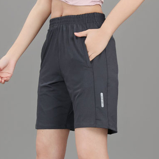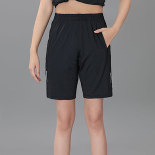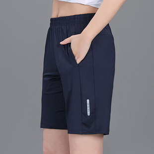 休闲跑步大码 拉链口袋运动短裤 高腰五分裤 薄款 速干针织弹力 女夏季