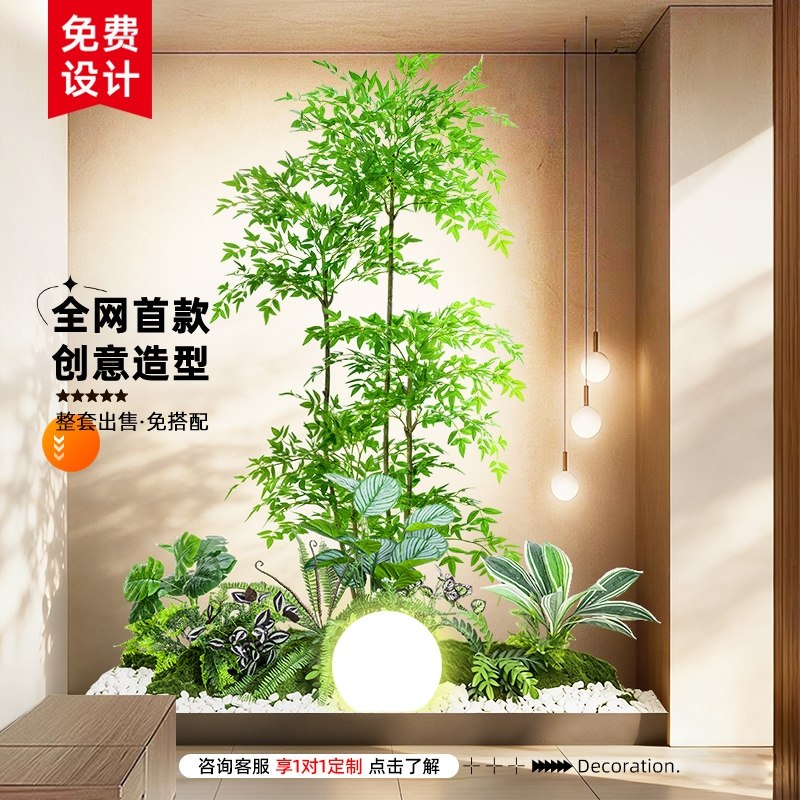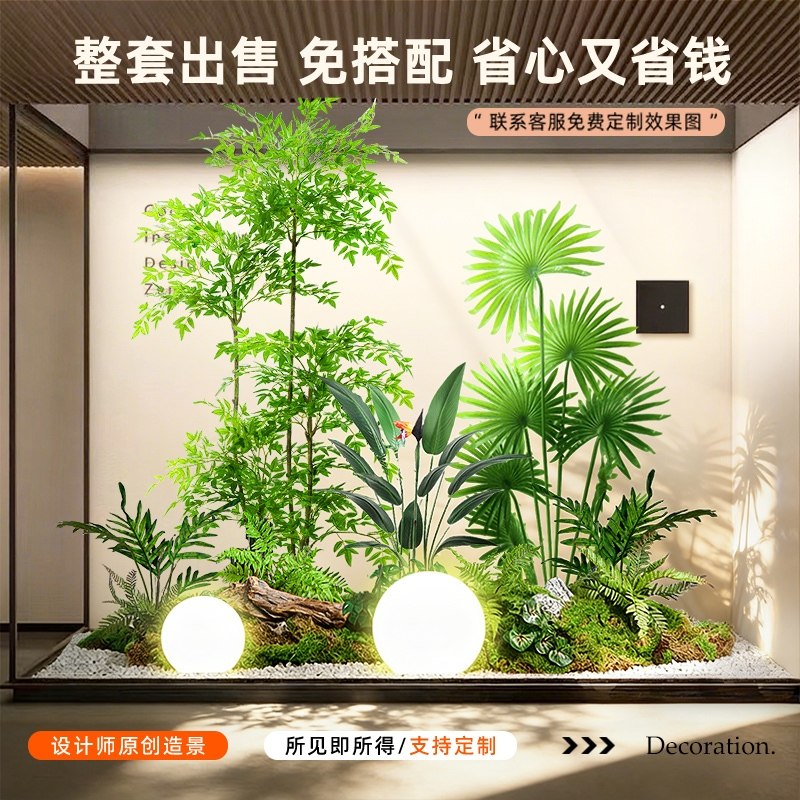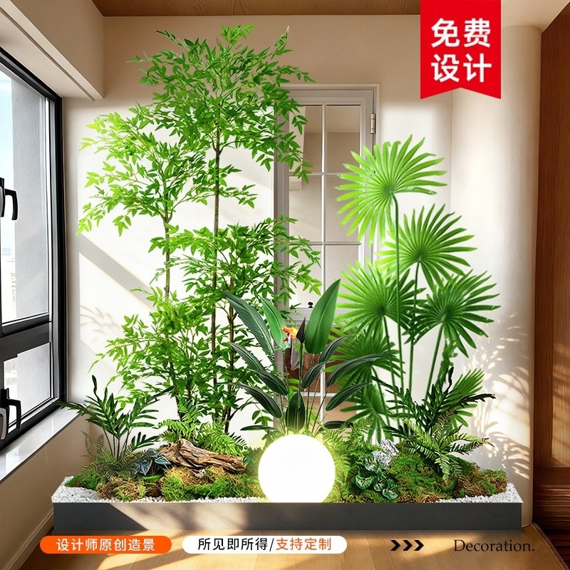 仿真绿植造景组合阳台景观布置室内假植物橱窗装 饰楼梯拐角造景树