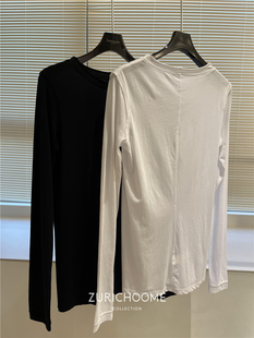 后中缝线 长袖 轻薄微透 匹马棉 打底卷边T恤 棉软舒适 私留两件