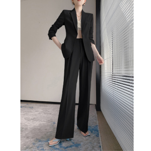 阔腿裤 黑色休闲西装 高级感气质职业正装 女春秋款 工作西服外套 套装