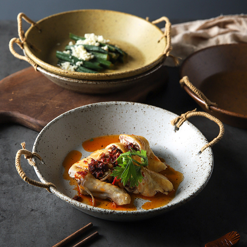 老式 土碗市井火锅店调料碗蘸水菜碗毛肚鸭肠菜盘粗制土陶复古商用