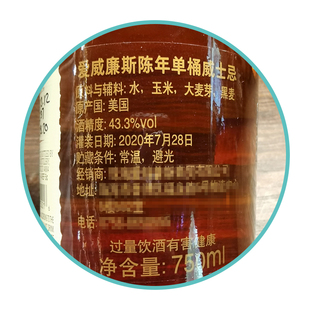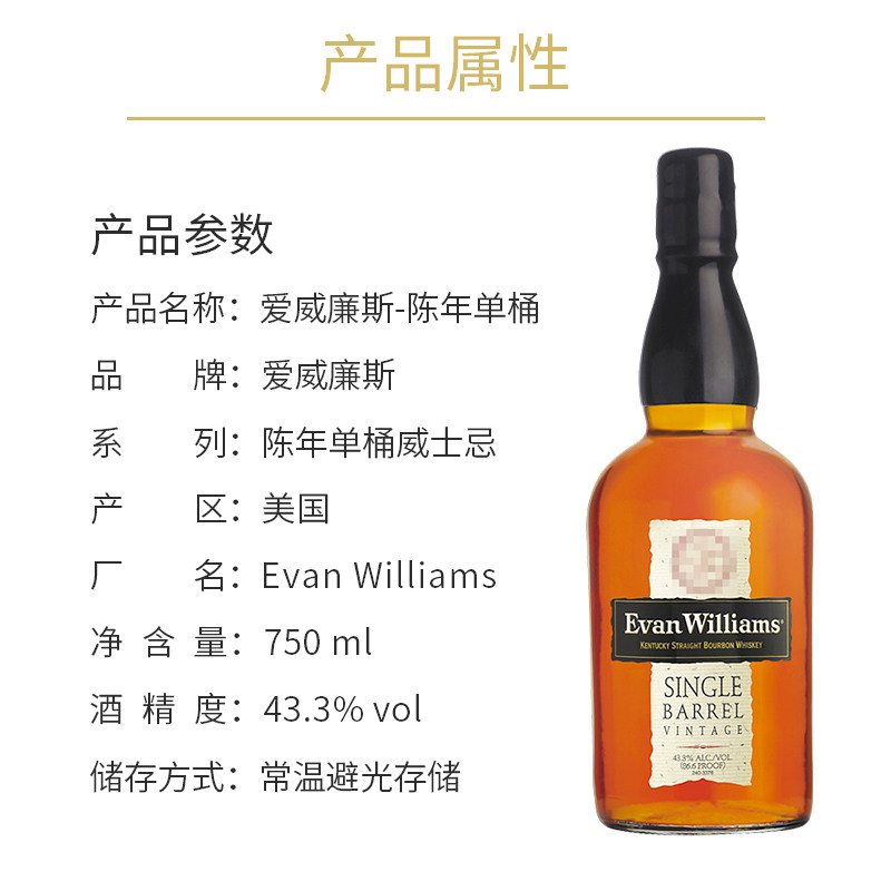 Williams Evan 爱威廉斯 陈年单桶威士忌750ml美国进口洋酒正品