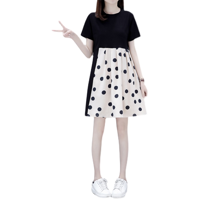 240显瘦a字连衣裙女 宽松遮肚波点裙大码 欧洲站胖MM夏装 300斤韩版