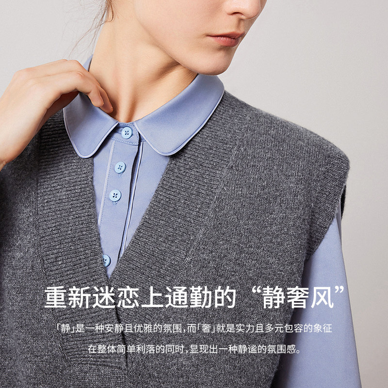 羊毛背心外穿针织衫 Navigare意大利小帆船V领马甲秋季 纯羊毛