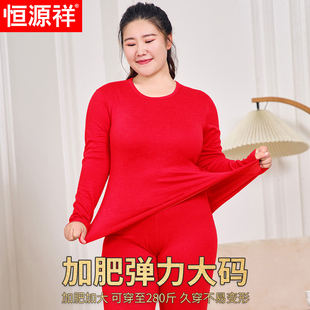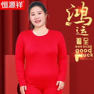 红色 加肥结婚羊毛秋衣秋裤 恒源祥大码 本命年内衣女德绒保暖套装